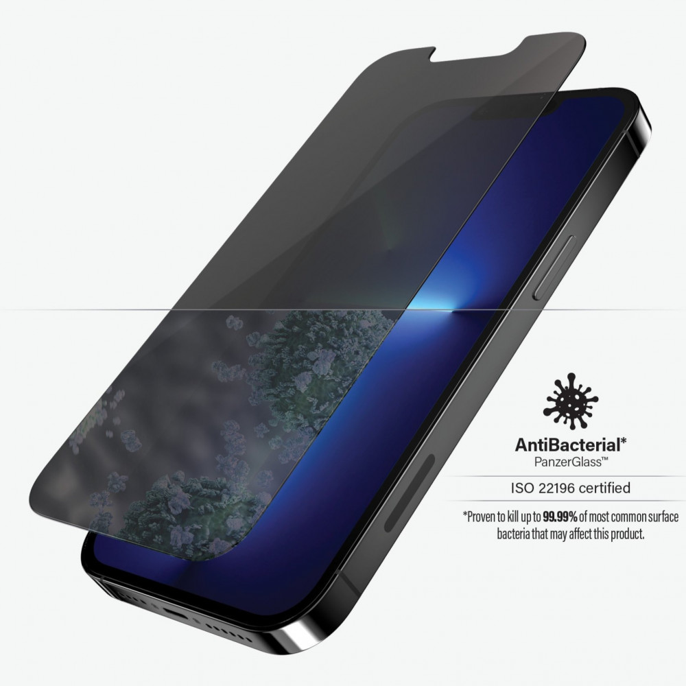 صُنع PanzerGlass ™ Standard Fit لجهاز iPhone 13 Pro Max من الزجاج المسطح المقسّى. يتم تقليل حجم الزجاج Standard Fit ويتميز بغراء سيليكون كامل يمنح حساسية مثالية للمس مع الاستمرار في توفير قوة PanzerGlass ™ الفائقة. يجعل مرشح السرية محتوى الشاشة غير مرئي تقريبًا للجميع باستثناء مستخدم الجهاز.